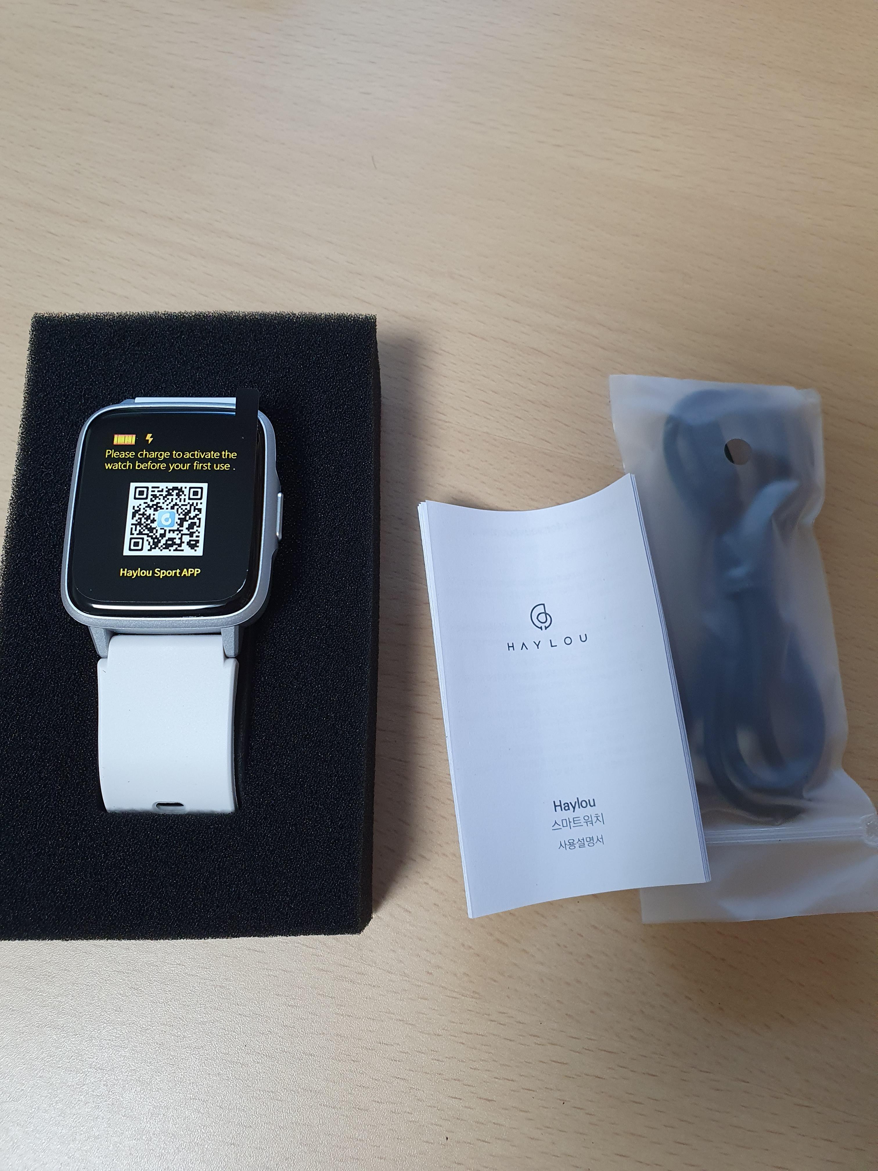 스마트 워치 본체, 설명서, 충전 케이블이다.