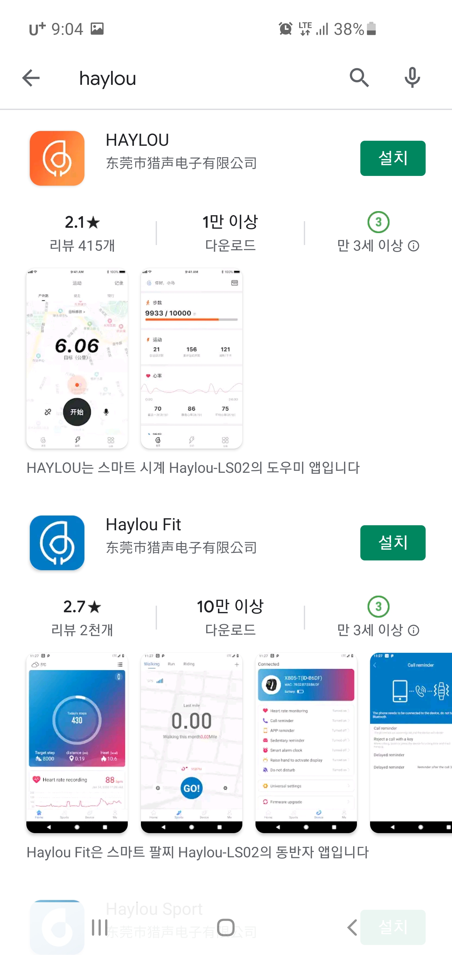 플레이 스토어에서 Haylou로 검색하면 이 두 가지가 먼저 나온다.