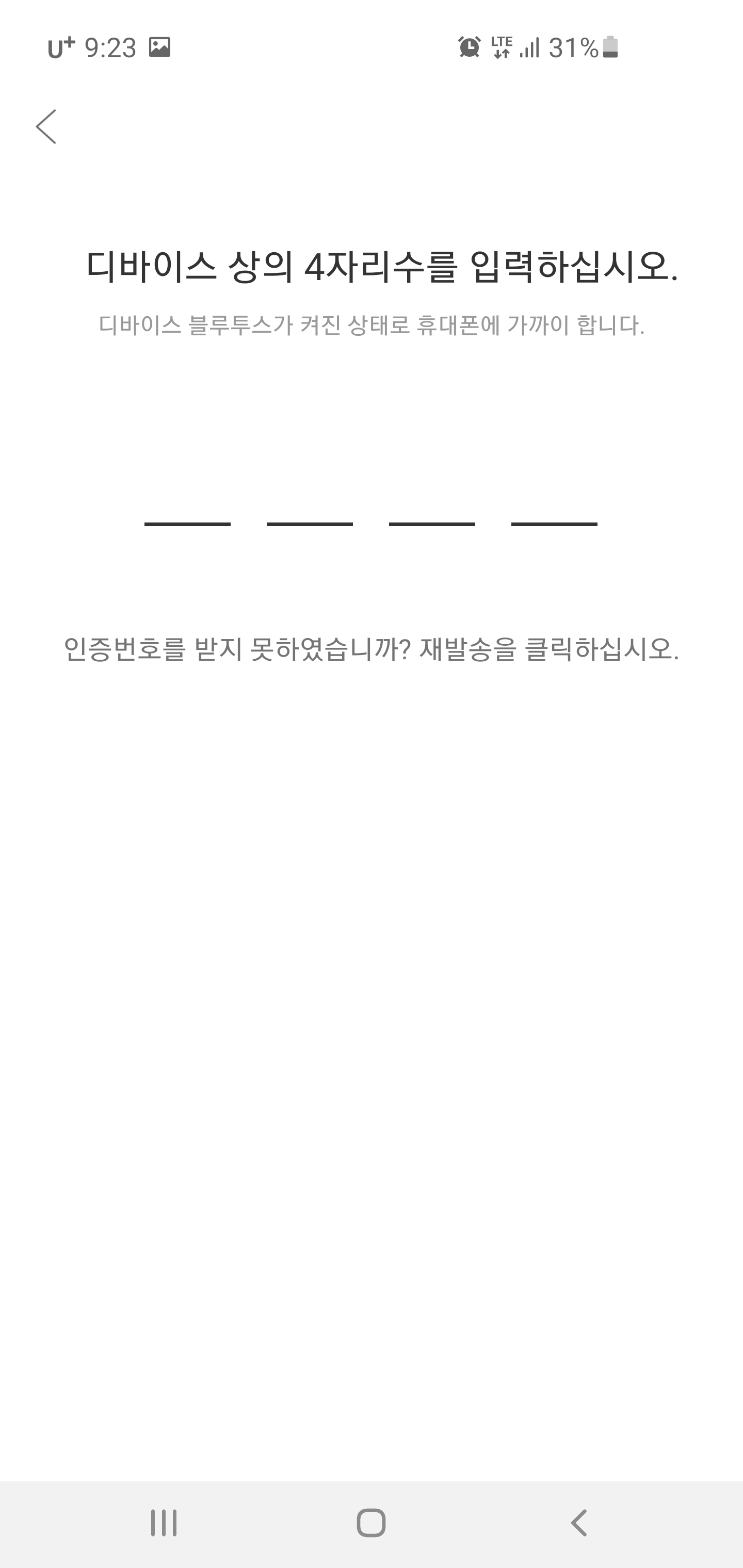 핸드폰 블루투스가 켜진 상태에서 스마트 워치에 전원을 켜면 아래와 같이 디바이스에 나타나는 번호를 넣으라고 한다.